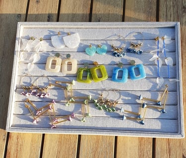 Les boucles d'oreilles Céleste sont un hommage à la délicatesse du matin. Fabriquées en acrylique, elles sont disponibles en trois couleurs douces au choix, chacune évoquant une sensation particulière. Ces boucles d'oreilles légères ajoutent une touche de couleur et de légèreté à votre tenue. Que vous optiez pour le bleu azur, le vert doux ou le blanc marbré, les boucles d'oreilles Céleste vous accompagneront avec élégance tout au long de la journée.